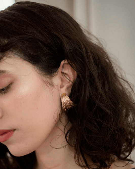 Golden Wave Shell Earrings 18k Gold PlatedInspired by waves sculpting the shore, this pair captures the slow, powerful work of time and water. They speak to the woman who knows transformation begins within. Earring Length: 38mm Earring Width: 43mm Material: 18k 18k Gold-plated Shape: Shell Weight: 16.6g (pair) Durability:...