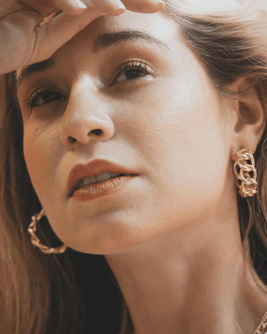 Pulse Leaf Earrings 18k Gold PlatedShaped like a leaf in motion, the Pulse Leaf Earrings echo the quiet rhythm that flows beneath the surface — a symbol of intuition, growth, and feminine resilience. Each curve follows an organic path, like veins tracing the pulse of nature. Lightweight yet full...
